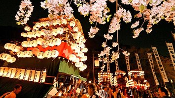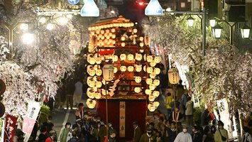 夜桜と山車共演、幻想歴史絵巻 岐阜まつり宵宮