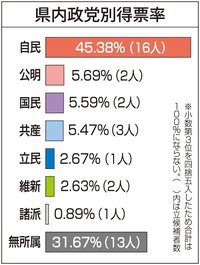 「自民1強」得票率45%、維新は立民に肉薄 岐阜県議選分析、野党いずれも1桁台%