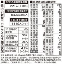 【11日・新型コロナ詳報】岐阜県で221人が感染、1人死亡 関市の医療機関でクラスター