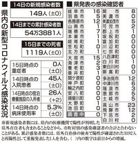 【15日・新型コロナ詳報】岐阜県で149人が感染 26市町で新規感染 重症者、死者の発表はなし 新型コロナウイルス 2023年4月15日 19:26 岐阜県と岐阜市は15日、14日に... 残り252文字(全文:269文字) この記事をお読みいただくには「デジタルプラン」または「宅配+デジタルプラン」の会員登録が必要です。無料会員の方はログインしてマイページからコース変更してください。デジタルプランまたは宅配+デジタルプランをご登録中の方はログインしてください。 岐阜新聞デジタル会員に登録すると 無料会員向け記事が読める ニュースレターで最新情報が受け取れる デジタルプラン、宅配+デジタルプランなら Webオリジナルコンテンツが読める 紙面ビューアが読める チケットの先行発売に参加できる お得なクーポンが使える 新規登録ページ ログインページ トップ 岐阜のニュース 新型コロナウイルス 【15日・新型コロナ詳報】岐阜県で149人が感染 26市町で新規感染 重症者、死者の発表はなし 関連記事 餅をまく 歌手が歌う 小学生の孫が応援演説・・・実は違反の可能性 公職選挙法のポイント 「新本庁舎建設は中止/政治への信頼最優先」岐阜・多治見市の未来、論戦 市長選立候補予定者討論会 対向車と正面衝突、70代女性2人が死亡 岐阜・下呂市の国道41号 コロナ感染者急増、夏休みで人流活発「若い人も後遺症リスク、警戒を」岐阜県がメッセージ おすすめ記事 3期目か刷新か、岐阜市長選新年決戦へ 柴橋氏と大須賀氏が出馬会見 「駿河屋」が岐阜市のマーサ21に開店 ガンプラやアニメ雑貨など30万点以上 聞き流す岐阜のニュース(~12月12日)岐阜県内の商業施設店舗面積ランキング/岐阜県警、ユニークな採用動画/冬眠明けのクマ捕獲へ/「福男選び」中津川で再び 岐阜市にサウナ特化型店舗、12月15日オープン フィットイージーが1号店