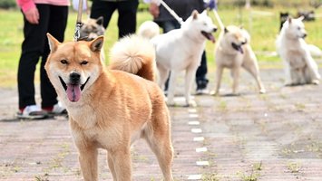 CMのお父さんで愛される「北海道犬」成育状態を競う 岐阜・神戸町でチャンピオン展