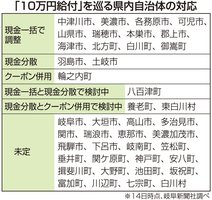 10万円給付、岐阜県内12市町が現金一括へ 未定含め大半が現金軸