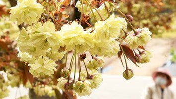 黄緑の桜「園里黄桜」が満開 岐阜・高山市