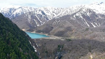 空から残雪と新緑眺める旅、壮観 岐阜・白川村でヘリ遊覧飛行