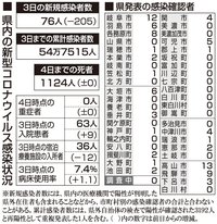 【4日・新型コロナ詳報】岐阜県で76人感染 新たなクラスター、死者の発表はなし