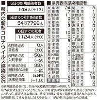 【6日・新型コロナ詳報】岐阜県で148人感染 前週土曜より107人減少 死者の発表はなし