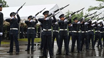 殉職隊員に哀悼の空砲 航空自衛隊岐阜基地、140人参列