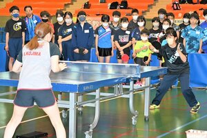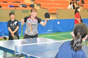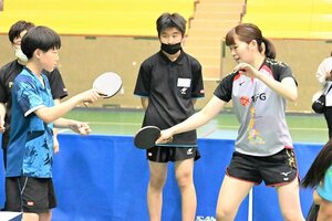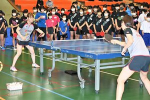 プロの技術を伝授 大垣市で卓球教室、日本生命と十六FGの選手が指導