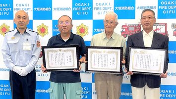竹やぶ火災、居合わせた4人連携プレー「1人ではできなかった」岐阜・輪之内町で発生、感謝状