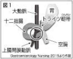 食後におなかが張ったり、気持ち悪くなったりする症状はさまざまな病態で出現します。その一つに、十二指腸が、上腸間膜動脈と大腸脈や脊椎による圧迫のために通過障害を来して生じる「上腸間膜動脈症候群」と呼ばれる病気があります。今回はこの病気について話をします。