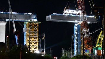 JR高山線上空に一夜で橋架かる 岐阜・高山、中部縦貫道の下切高架区間工事