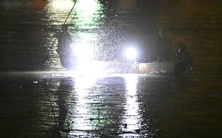 船べりに据えたLED(発光ダイオード)の強烈な光が、増水した川の底までくっきりと照らし出す。「カッカッカッ」。竹竿(ざお)を突き音を響かせると、若鮎が矢のように水中を走った。