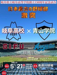 国内の高校野球部で最も古いといわれる岐阜高(岐阜市)と青山学院高等部(東京都)が21日、岐阜市長良福光の長良川球場で記念試合を行う。今年に学校の創立150周年を迎えた岐阜高は県内トップクラスの進学校ながら、昨秋と今春の県大会で4位と快進撃を続ける。伝統校同士の対決にOBら野球ファンの期待が高まっている。