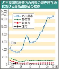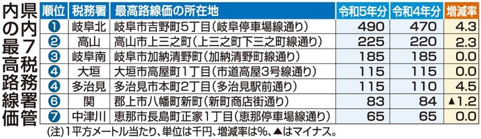 岐阜県内の路線価14年連続下落 下げ幅は縮小、商業地と観光地で回復