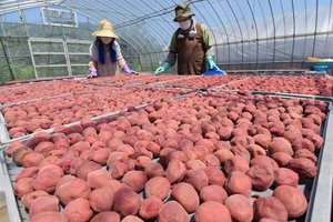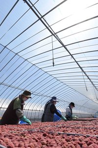 梅干し作り最盛期 ビニールハウスで仕上げの天日干し 岐阜・池田町