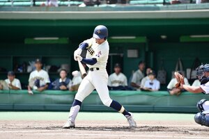 【4回戦】市岐阜商が接戦を制した。市岐阜商は初回、二死から2点適時打で先制。1点差に詰め寄られたが、六回に長打で追加点を奪い試合を決めた。中津商は二回、機動力を使って1点を返し、その後もチャンスをつくったが、あと1本が出なかった。