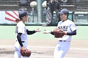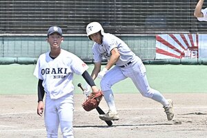 5回表 大垣日大=4番高橋空振り三振、5番山田一塁ゴロ、6番日比野、中前打。2死一塁。7番山内二塁ゴロでチェンジ