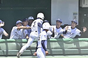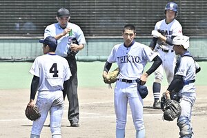 9回裏 帝京大可児=9番片岡の代打内山、一塁ゴロ。1番中野三塁ゴロ、2番井本三塁ゴロ。延長十回タイブレークに