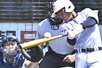 1回表 大垣日大=帝京大可児先発は大型左腕の加藤大和。1番高川投ゴロ、2番権田四球、3番米津、1死一塁、フルカウントから外角のストレートを右中間二塁打し、1点を先制。4番高橋左飛。5番山田右飛
