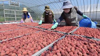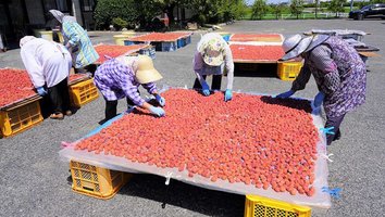 太陽ジリジリ、酸味じわじわ 岐阜・安八百梅園の梅天日干し