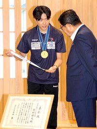 世界フェンシング団体「金」鈴村健太選手、パリ五輪出場へ決意 岐阜県知事に報告