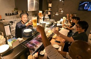 コロナ禍の不安の中での独立。それでも、地元はもちろん、遠方からもバスに揺られて客が訪れ、連日満席の人気店に。開店1周年の今月23日は、常連客がケーキでお祝いしてくれた。「真面目にやっていれば、真面目なお客さんが付くんだね」。客のおごりのビールで乾杯を繰り返す黒木さんの顔がほころんだ。