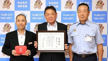 会議中に同僚が心肺停止に、AED適切操作で命救う「社内訓練が奏功」 バローに消防長表彰状