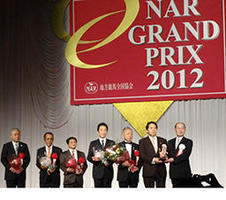 NARグランプリ2012の年度代表馬にラブミーチャン。表彰を受ける柳江仁調教師(中央)ら関係者