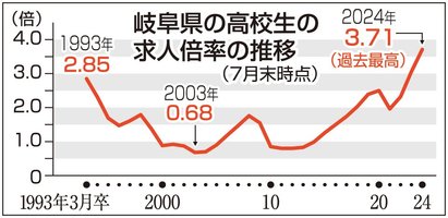来春高卒求人3.71倍、岐阜県内過去最高 企業側の人手不足と少子化&進学する生徒増加
