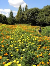 秋感じるオレンジ花壇、マリーゴールド一面に 岐阜・可児市、ローズガーデンで見頃