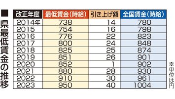 賃上げ「中小には負担大」岐阜県最低賃金950円に、愛知と77円差「雇用維持懸念/国の支援を」 経済 2023年9月28日 08:33 岐阜県の最低賃金が10月1日、時... 残り788文字(全文:805文字) この記事をお読みいただくには「デジタルプラン」または「宅配+デジタルプラン」の会員登録が必要です。無料会員の方はログインしてマイページからコース変更してください。デジタルプランまたは宅配+デジタルプランをご登録中の方はログインしてください。 岐阜新聞デジタル会員に登録すると 無料会員向け記事が読める ニュースレターで最新情報が受け取れる デジタルプラン、宅配+デジタルプランなら Webオリジナルコンテンツが読める 紙面ビューアが読める チケットの先行発売に参加できる お得なクーポンが使える 新規登録ページ ログインページ トップ 岐阜のニュース 経済 賃上げ「中小には負担大」岐阜県最低賃金950円に、愛知と77円差「雇用維持懸念/国の支援を」 関連記事 日銀・中村審議委員「岐阜経済は総じて持ち直し」金融政策正常化は時期注視 岐阜市で会見 中小企業の価格転嫁促進、取引改善や賃上げ期待 連合岐阜と県経営者協会が共同宣言 72%が賃上げ、製造業では8割超最多 岐阜県内企業22年度、2年連続増加 基準地価、岐阜県内商業地31年ぶりマイナス脱却 上昇地点倍増、経済活動が回復 リニア静岡工区、早期着手図る 促進経済団体連が決議、国交省に要請書提出 総合アパレル・ワキタ、海外販売視野 世界最大級のメンズファッション市に初出展へ おすすめ記事 岐阜焼肉のレジェンド! 創業60年の名店 「大鵬」 日本三大山城夜景に岐阜城 3市で観光ブランド発足、夜間イベント充実へ ボイメン辻本さん、岐阜羽島署の特別アンバサダーに 啓発イベントなど企画 住民外出中、岐阜市で民家火災「2階から炎が」