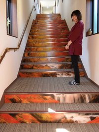 階段アートで紅葉狩り、入浴客出迎え 岐阜・池田町の温泉施設「湯華の郷」に登場