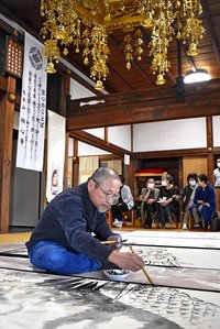 即興ふすま絵、下書きなし2時間で天舞う竜描く 岐阜・美濃市の寺で制作公開