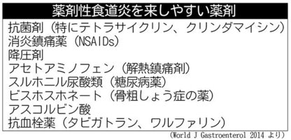 喉の詰まり感や心窩(か)部(みぞおち)の不快感などの症状の要因の一つに、「薬剤性食道炎」があります。傷害の程度によっては吐血を来すこともあります。今回は、服用した薬剤が長時間にわたって食道内に停滞すると、薬剤が食道の粘膜を直接に傷害することがある薬剤性食道炎について説明します。