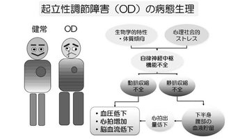このような状態が続いて、さらに症状が進行すると起立性調節障害(OD)と呼ばれる状態になります。起立時に体内の血液移動が生じると、脳や全身臓器への血流が低下し、頻脈や低血圧を生じます。主な症状は①立ちくらみ、あるいはめまいを起こしやすい②立っていると気持ちが悪くなる、ひどくなると倒れる③入浴時あるいは嫌なことを見聞きすると気持ちが悪くなる④少し動くと動悸(どうき)あるいは息切れがする⑤朝なかなか起きられず午前中調子が悪い⑥顔色が悪い⑦食欲不振⑧腹痛をときどき訴える⑨倦怠(けんたい)あるいは疲れやすい⑩頭痛⑪乗り物酔いしやすい、などです。