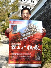 紅葉の名城「郡上八幡城」鉄砲隊演舞や和傘コラボ復活 11月3日からまつり、ポスター作製