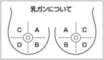 検診が予定通りに行われるか心配な時こそ乳房の自己チェックが大切です。以前に乳房の自己チェックは乳房をつかまず、なでるように触ってくださいとお伝えしました。乳房の硬さには個人差があり触っても異常かどうか判断ができないという声をよく聞きますが、そのような時には左右の対応する部分を比較しながら触るのがこつです。自分の乳房を大きく4カ所に分け=図=、右のAと左のAを比較する、右のBと左のBを比較するという具合にチェックし、左右差のある部分はないかを調べてください。Aの部分は肋骨(ろっこつ)に触れやすく、異常なしこりと間違えやすいので、あれっと思ったら、横方向に長く続く骨ではないか意識してチェックする、そして反対側にも同じ特徴がないかを確認してみてください。