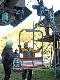 スキーシーズン準備着々、リフト座席取り付け パウダースノーが人気の岐阜・飛騨高山スキー場