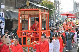 華やか姫行列、大垣市の中山道赤坂宿まつり 皇女和宮ら3人の姫が時代絵巻を繰り広げる