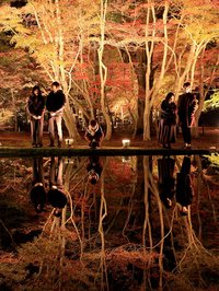 紅葉の木々が池に映る「逆さもみじ...