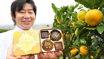 ミカン畑のような新作チョコ「南濃みかん」酸味との相性ぴったり 岐阜・海津市特産使った洋菓子考案