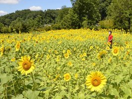 黄色に染まる夏畑、ヒマワリ大輪 ぎふ清流里山公園