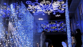 青と白、癒やしのイルミネーション 岐阜・飛騨信組本店で冬恒例点灯