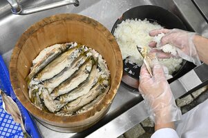 組合のうち旅館の5軒が、懐石の一品やメニューに載せない形で、時期によって提供している。味がそれぞれ異なるのは、まさに発酵の妙。西岡さんは今季、約200匹を仕込む。「岐阜ならではの味を、歴史と共に味わってほしい」と願っている。