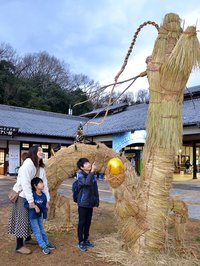 わらアート「竜」上昇志向 体長12メートル、ぎふ清流里山公園に登場