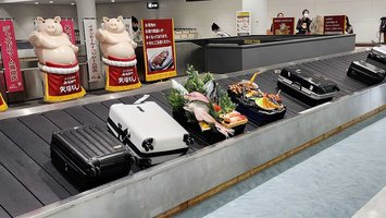 手荷物ターンテーブルに流れてきた「名古屋めし」スーツケースに食品サンプル 中部国際空港で展示