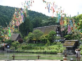 飛騨の里、ササ飾りゆらり 願い事並ぶ