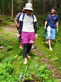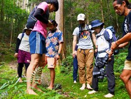コケふかふか、はだしで森歩き 心も解放「気持ち良い」歓声