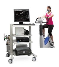 心臓リハビリテーションでは、運動強度が強くなり過ぎて無酸素運動にならないように軽度から中等度の有酸素運動を主体として運動療法を行っていきます。無酸素運動が始まる運動レベルは個人ごとで異なるため、心肺運動負荷試験CPX=写真=を行って無酸素運動が始まる運動強度(嫌気性代謝閾値(いきち)=AT)を測定して適切な運動処方をします。