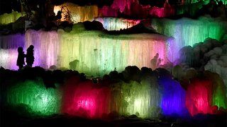 夜の寒中水泳 郡上本染、こいのぼりライトアップ
